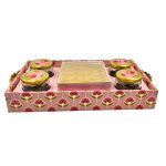 Decorative Golden Round Tray – Elegant Metal Platter with Intricate Embossed Patterns for Serving and Home Décor|COLOUR-GOLD| Brand Name : SUGARCRAFT BOX CO