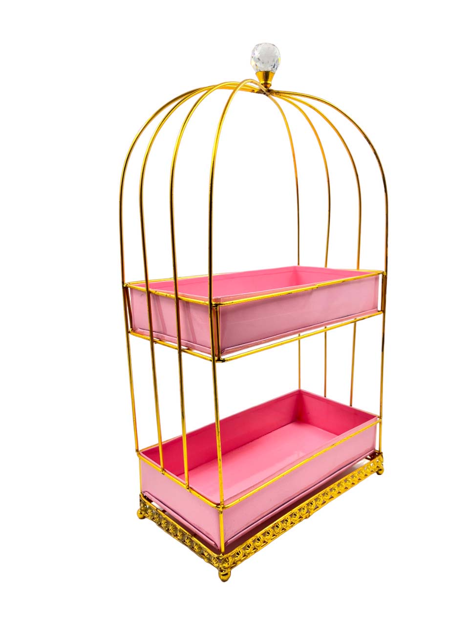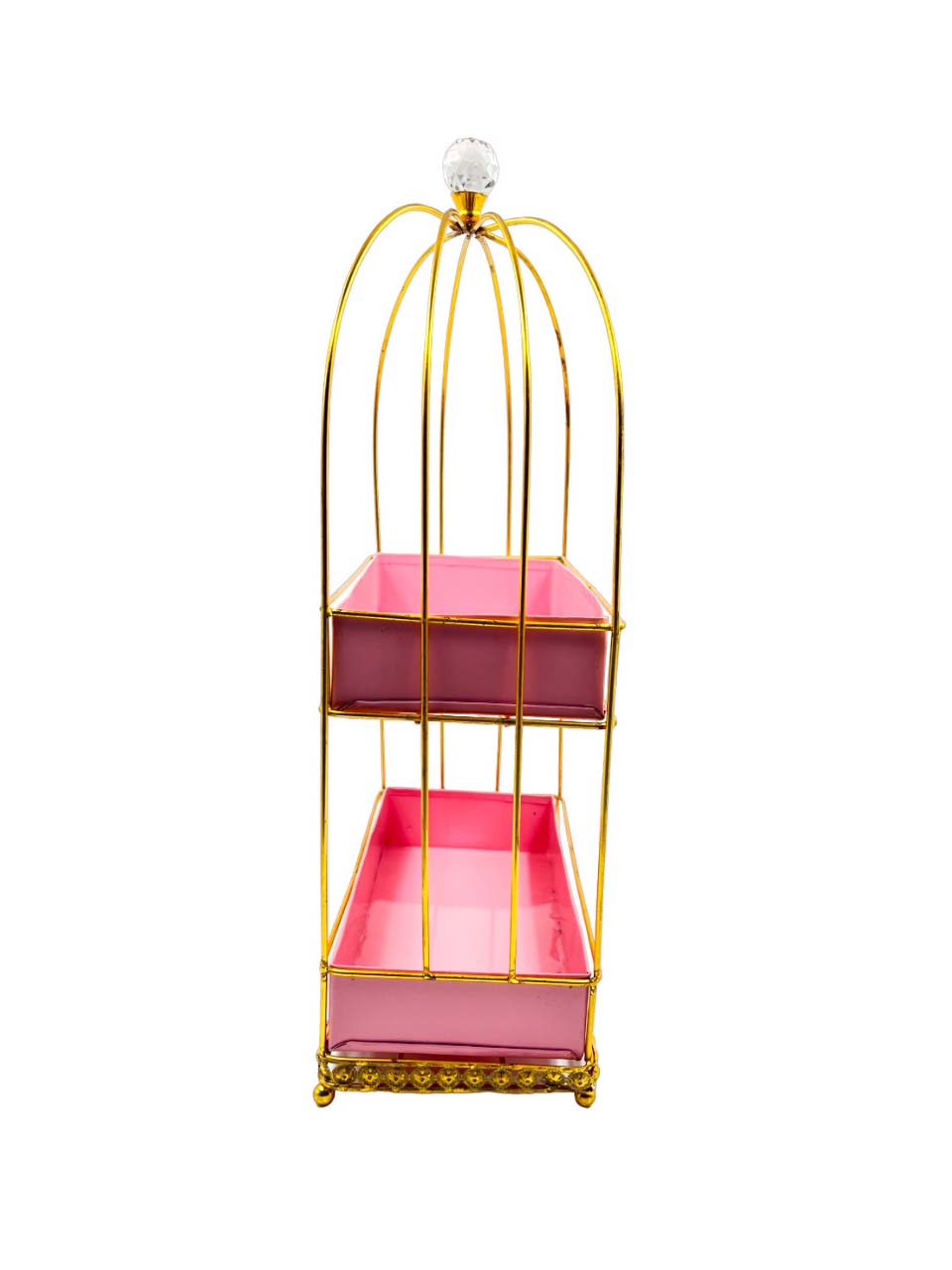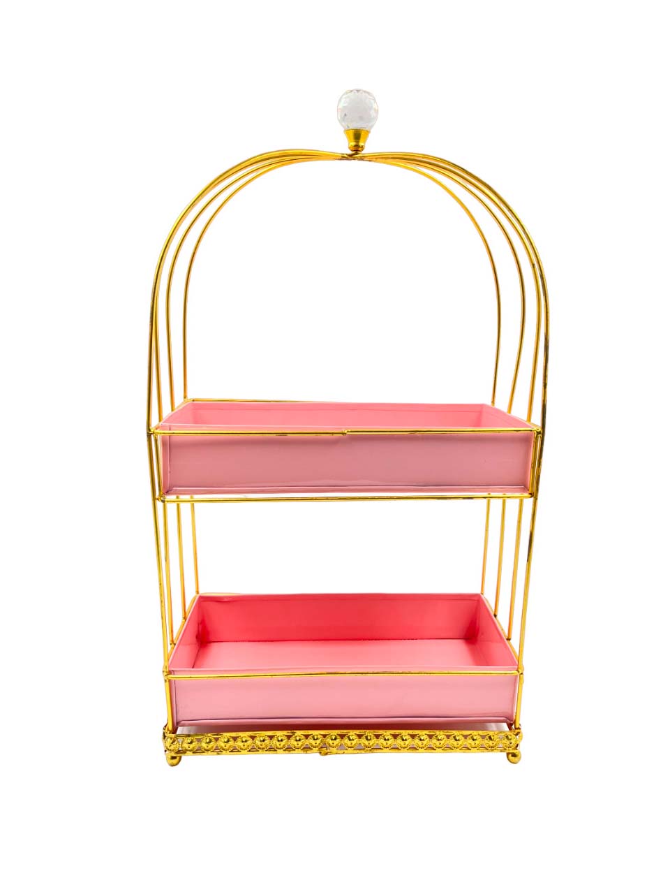 Whimsical Pink and Gold Tiered Display Stand with Crystal Finial – Elegant Metal Organizer for Home and Events|COLOUR-PINK AND GOLD| Brand Name : SUGARCRAFT BOX CO