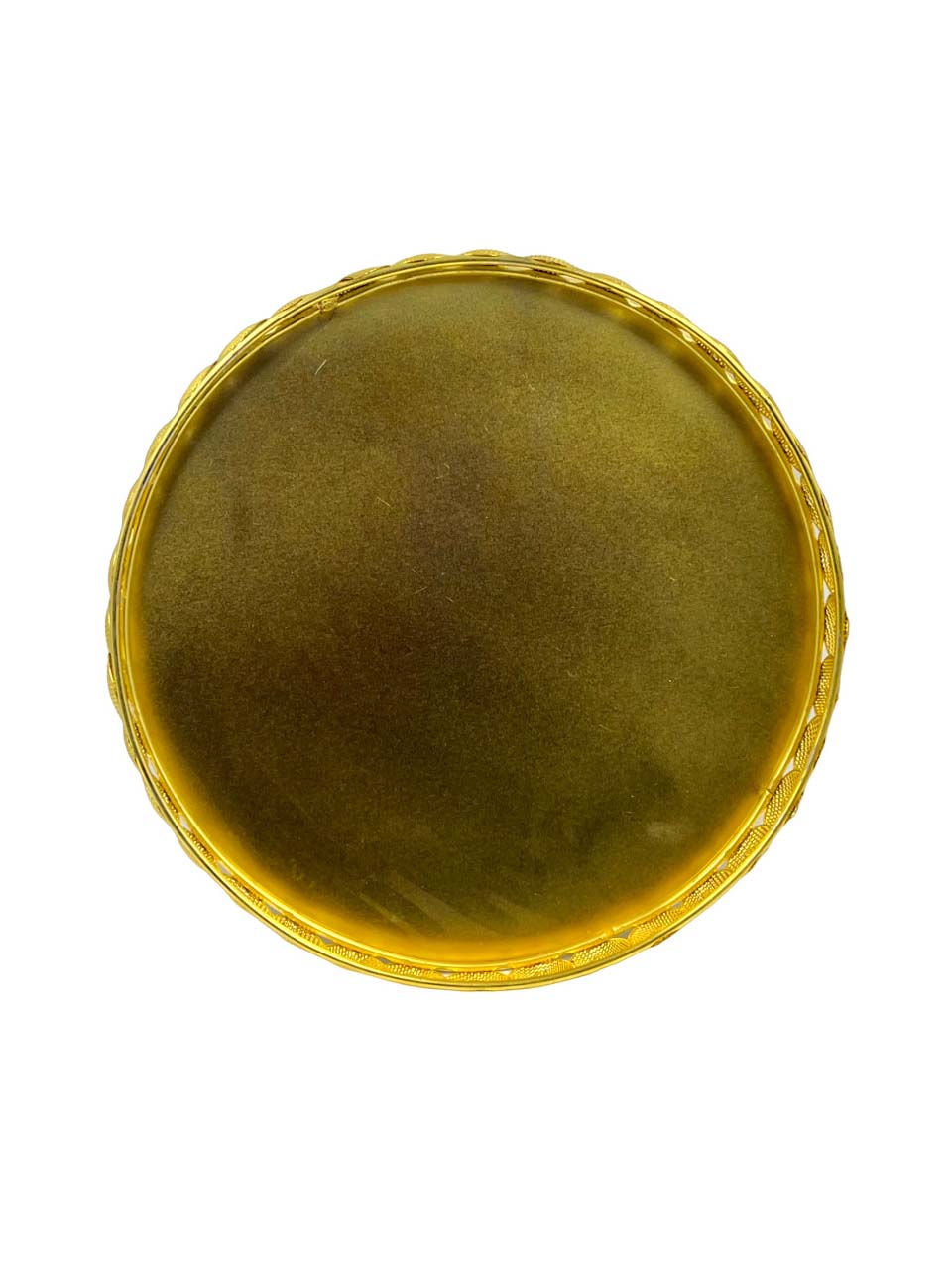 1 review for Decorative Golden Round Tray – Elegant Metal Platter with Intricate Embossed Patterns for Serving and Home Décor|COLOUR-GOLD| Brand Name : SUGARCRAFT BOX CO