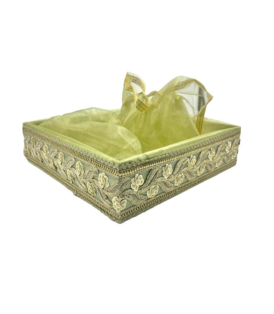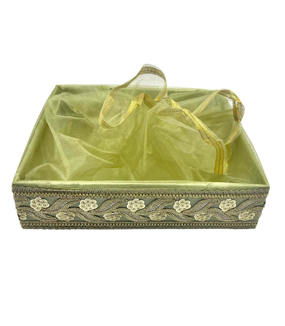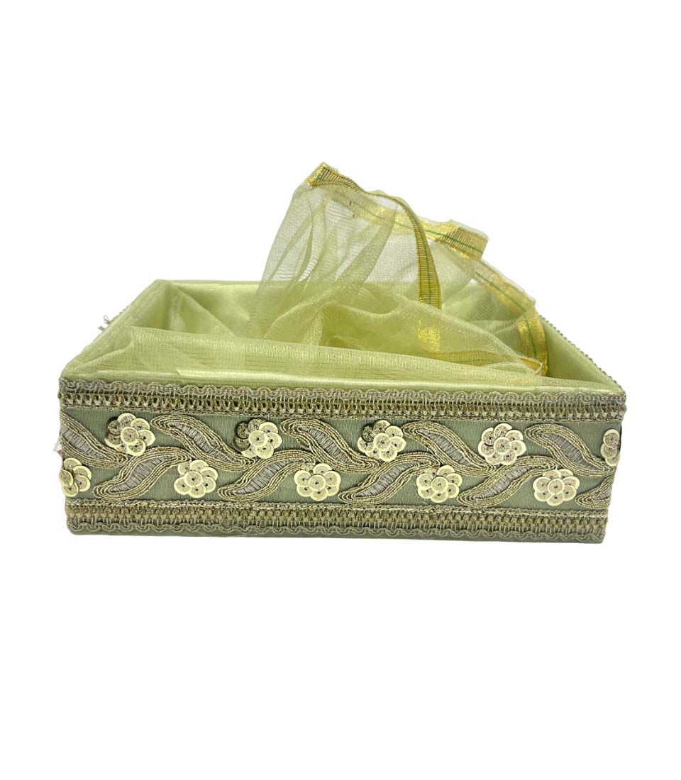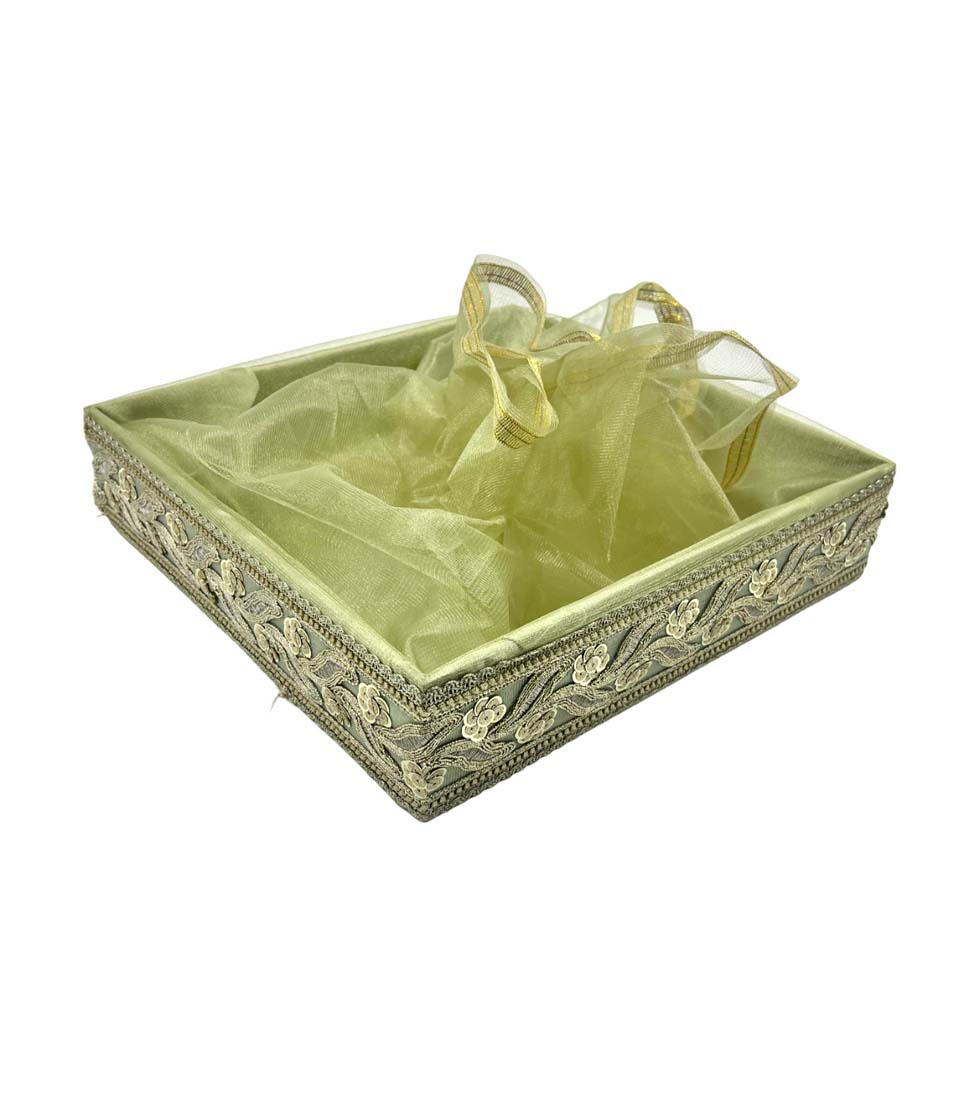 Home Products Hamper Boxes Regal green Satin Fabric Covered Gift Box with Golden Trim – Luxurious Keepsake and Presentation Case.|COLOUR-LIGHT GREEN| 10×10 Inch