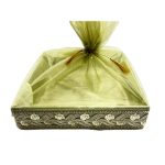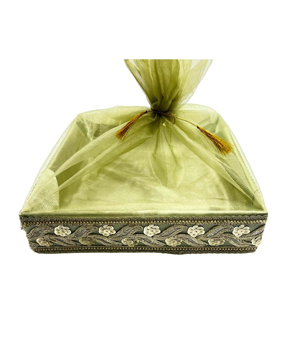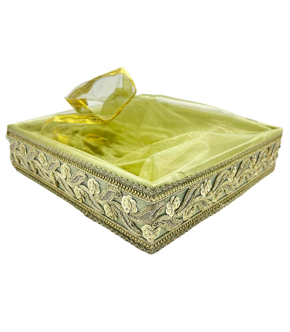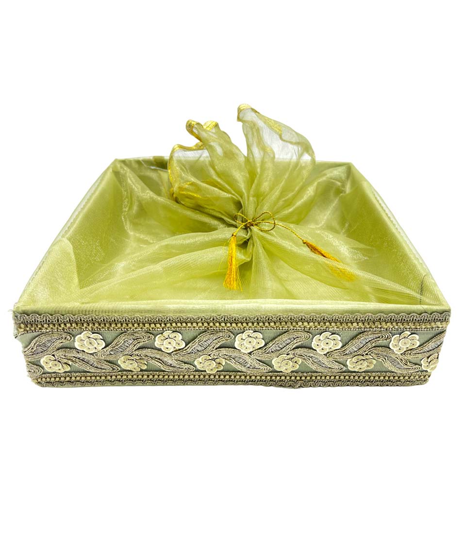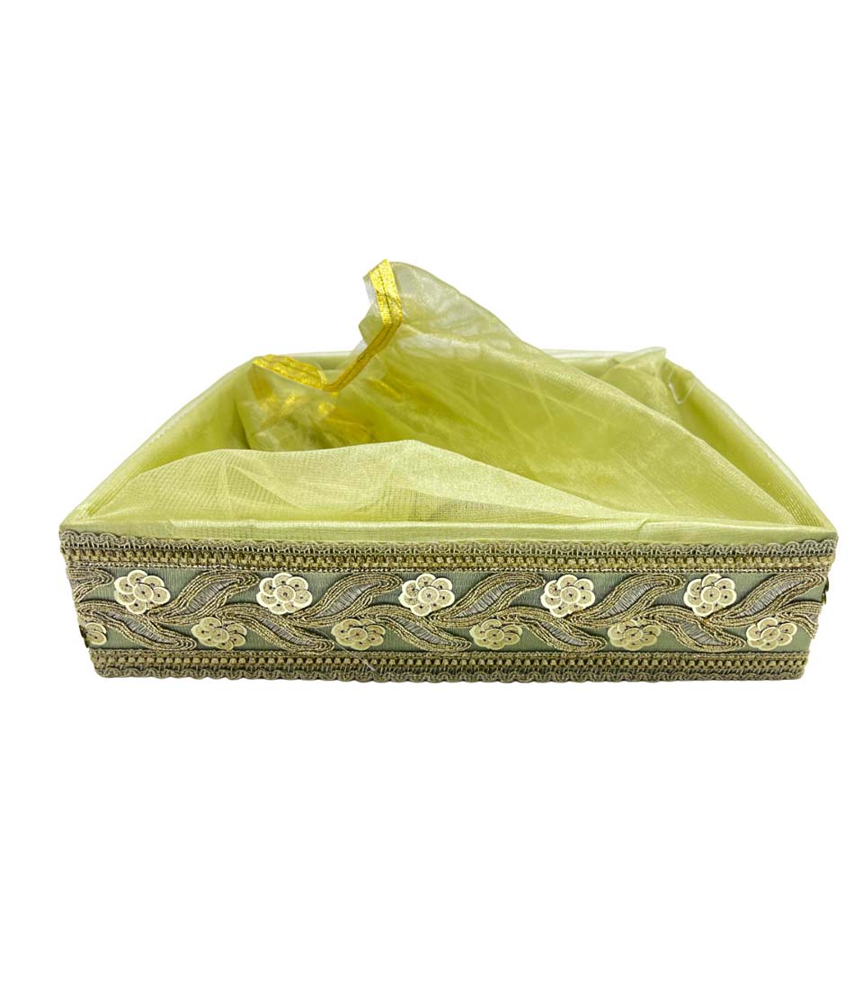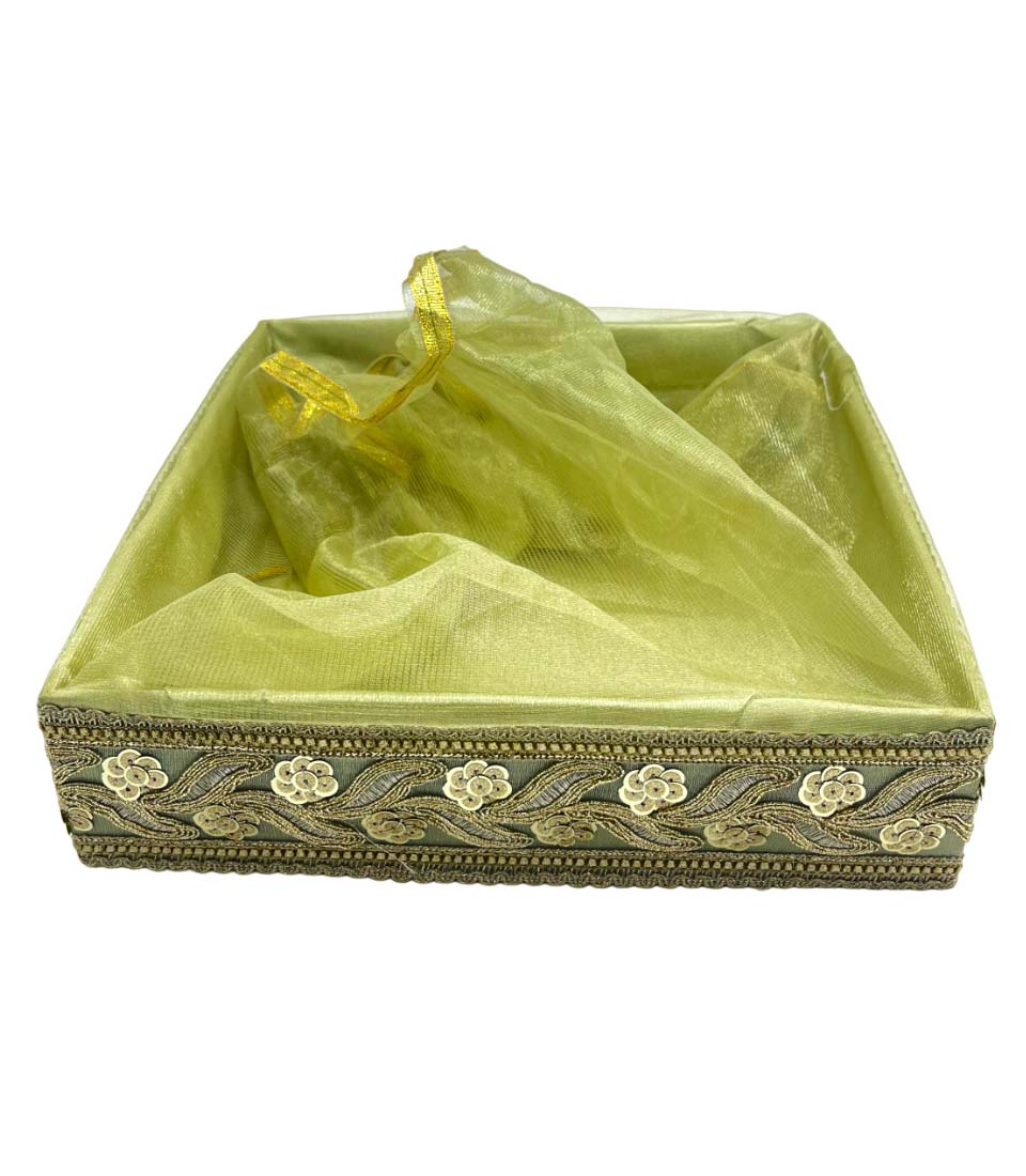 Home Products Hamper Boxes Regal green Satin Fabric Covered Gift Box with Golden Trim – Luxurious Keepsake and Presentation Case.|COLOUR-LIGHT GREEN| 12×12 Inch