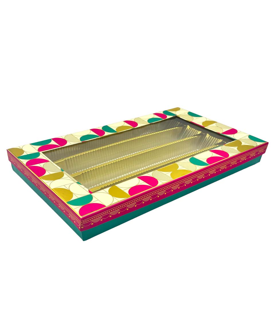 Home Products Sweet Boxes Sweet Box with Magnetic Flap | Handmade Cardboard Paper Gift Box for Gifting Sweets Chocolate Dry Fruits Cavity/Compartments (MB54 New Serai W 750 gm Box) PACK OF 5